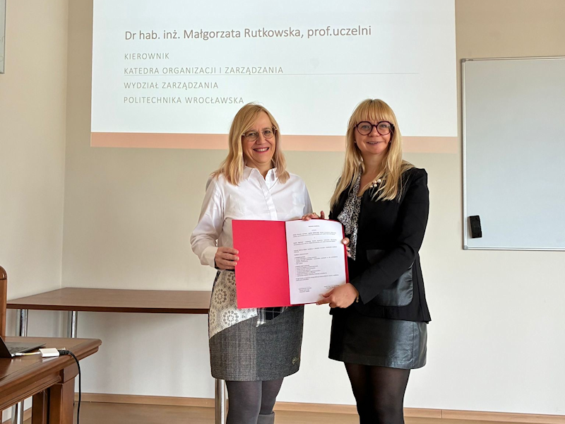 W trakcie pobytu Katedra Ekonomii, Innowacji i Kapitału Społecznego, reprezentowana przez Kierownika Katedry, dr hab. Agnieszkę Rzepkę, prof. uczelni podpisała deklarację współpracy z Katedrą Organizacji i Zarządzania, Wydziału Zarządzania Politechniki Wrocławskiej, reprezentowaną przez kierownika katedry dr hab. inż. Małgorzatę Rutkowską, prof. uczelni.